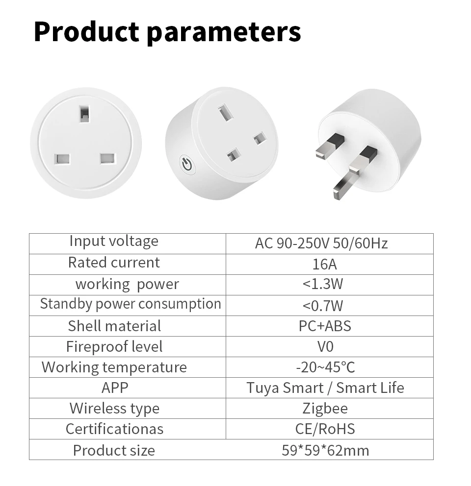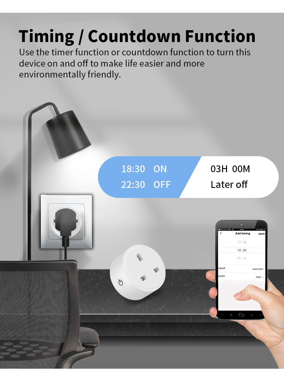 TechnoWhale 4pcs Smart Power Plug UK 16A Power Monitoring Smart Life Wifi Intelligent Mini Socket Electrical Wireless Smart Outlet Alexa Tuya