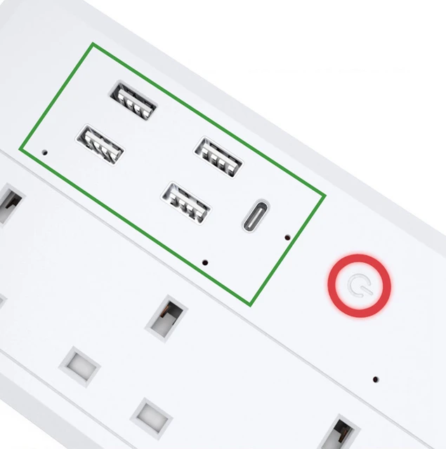 Technowhale Smart Power Strip UK WiFi Plug with Tuya application Power Monitor 1.8m Cable Length with 4 AC Socket 4 USB Ports and 1 USB-C Smart Home Appliance Voice Control for Alexa and Google Home
